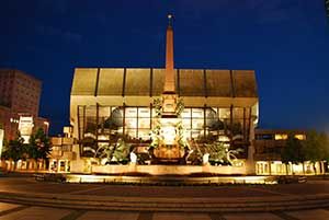 Das neue Gewandhausen liegt in direkter Nachbarschaft des riesigen Universitätsgebäudes. 1977-1981 wurde es von Rudolf Skoda als letzter Neubau des damaligen Karl-Marx-Platzes für das Gewandhausorchester erbaut. Im Innern findet man im Wandelgang eine Beethovenplastik von Max Klinger.