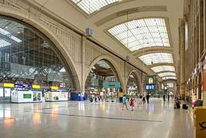Der Leipziger Hauptbahnhof mit einer enormen Frontlänge von 298 m und jeweils 220 m langen Längsbahnsteigen ist der größte Kopfbahnhof Europas.