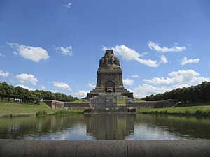 Das Völkerschlachtdenkmal jenseits des Messegeländes erinnert an die größte militärische Auseinandersetzung des 19. Jahrhunderts: Die 1813 vor den Toren Leipzigs ausgefochtene Völkerschlacht, die Entscheidungsschlacht des Herbstfeldzuges der Befreiungskriege, bei der insgesamt 130 000 Tote und Verwundete zu beklagen waren. Die verbündeten Armeen Rußlands, Österreichs, Preußens und Schwedens schlugen dabei die Armee Napoleons sowie die auf dessen Seite kämpfende Rheinbundarmee. Das Völkerschlachtdenkmal wurde zum Gedenken an dieses Ereignis von 1898 bis 1913 als 91 m hohes Monument errichtet.